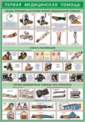 Плакат по охране труда и промышленной безопасности из серии плакатов "Первая доврачебная помощь" на ПВХ основе с креплениями для стены.