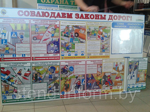 Стенд "Соблюдаем законы дорог" р-р 160*105 см на ПВХ 4 мм, объемный, толщиной 2 см. Стенд выполнен на пластике 3 мм с карманом А3 формата и стендом - книгой на 2 кармана . Стенд с книгой на 2 кармана с плакатами А4 (4 шт).Стенд оснащен металлическими креплениями для стены. На стенде размещены карманы А4 формата. Изготавливается стенд в среднем 7 рабочих дней. Сайт : https://stend-inform.by/. Заказать можно по телефону 80447071007, 80297091882 либо сбросить заказ на почту: stend-inform@mail.ru , указав ФИО, адрес доставки и телефон. Доставка при потребности в любой город Республики Беларусь.