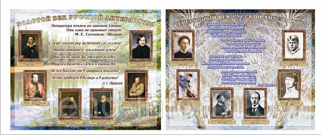 Стенд в кабинет русской литературы ЗОЛОТОЙ ВЕК, СЕРЕБРЯНЫЙ ВЕК, р-р 95*75 см